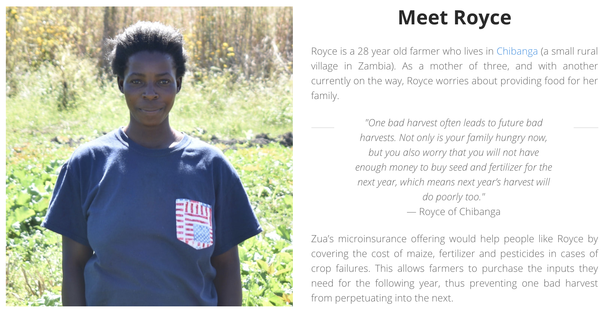 At the end of the harvesting season for farmers, Zua met its initial funding goals and was able to complete its pilot project. Due to the extreme drought in central Zambia at the time, farmers saw their crop yields decrease by 70 percent compared to the 10-year average. Therefore, farmers participating in the pilot project benefitted tremendously from having insurance that year. The payouts were used to purchase better seeds and equipment to improve their harvests for upcoming seasons.